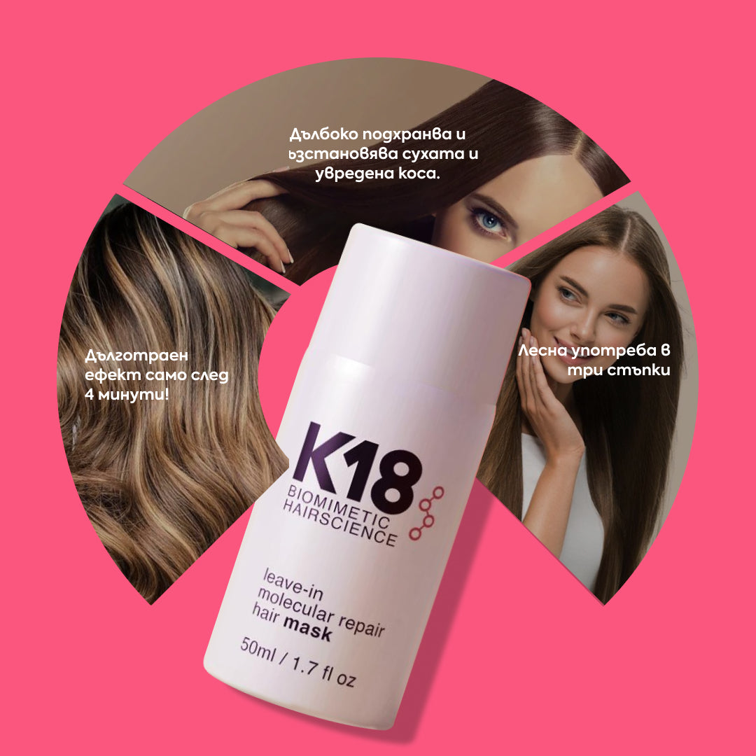 K18 Peptide™ е възстановяваща маска с биоактивен пептид, която ще върне блясъка и еластичността на косата Ви. Приложете маската и се сбогувайте със сухата и изтощена коса само за 4 минути.